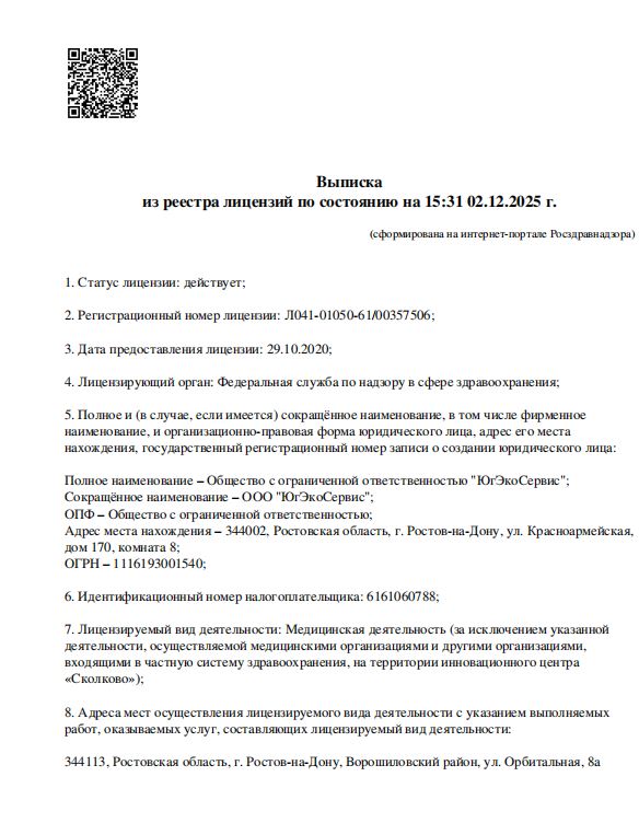 Лицензия № Л041-01050-61/00357506 от 29.10.2020